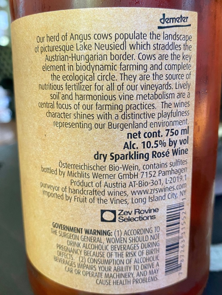 I’ll be honest, I couldn’t pass up the cute little cow on this label. I was shopping for wines to drink along with the Society of Wine Educators virtual conference that took place in August of this year. This wine was a good choice for several of the sessions: sparkling wine, Germany/Austria, rosé, and climate change since this wine is Demeter certified. Somehow I ended up opening for the session on Tuscany. Wait, what? I know, I know, that makes no sense. But it was the last session and it was Friday afternoon.
