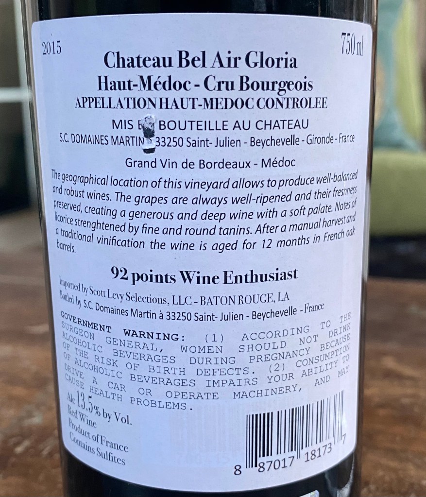 I’m a big fan of Cru Bourgeois, I’ll need to see if I can find the Ch. Bel Air Gloria!