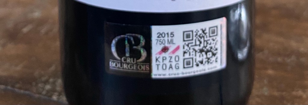 I’m addition to the indication on the label, there is an interactive designation sticker where you can look your wine up at the Cru Bourgeois website. You won’t find label indications of other classifications in my experience, making Cru Bourgeois its own thing in terms of Bordeaux. With the increase in quality, comes an increase price, you will find many Cru Bourgeois options at the $25 mark, but some will be a bit higher. I found one that was $25.99 but decided the .99 cents was a gray area for purposes of this article.