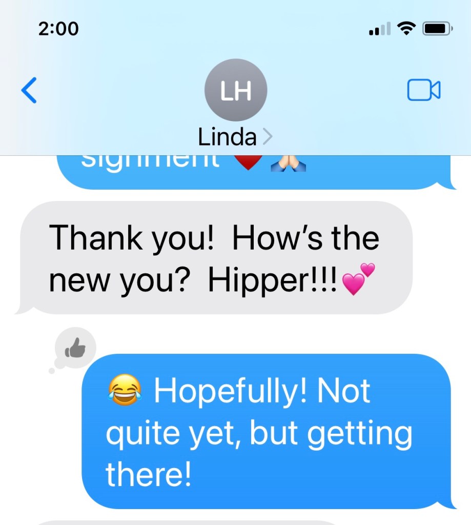 By the end of Thursday, this turns out to be my worst day. I’m in pain and it’s not just the thigh pain, I’m getting a pinching when I stand and put weight on my leg. My brain goes down a terrible bunny hole today. Maybe I will be in the small percentage of patients that don’t have a successful outcome. Maybe I chose the wrong surgeon. Maybe this, maybe that. Ugh!