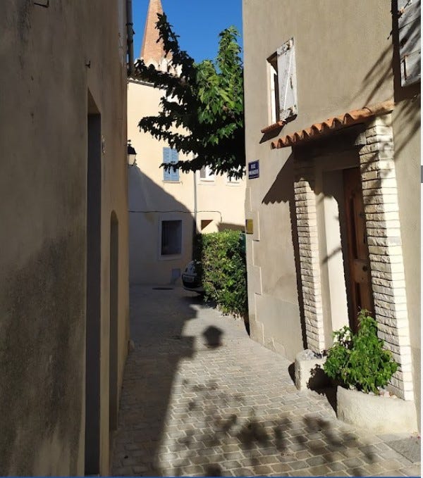There was cute little town, I cannot be sure of the name, but researching in hindsight, I think it was called La Cadiere-d’Azur. I put the center of this little town into my phone map and we followed it. From the highway, you had to navigate through the residential buildings that surround the town to get to the center.