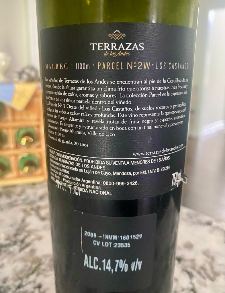 Parcel No. 2W Los Castanos|Paraje Altamira| Terrazas de los Andes|2013|14.7% ABV|$80*