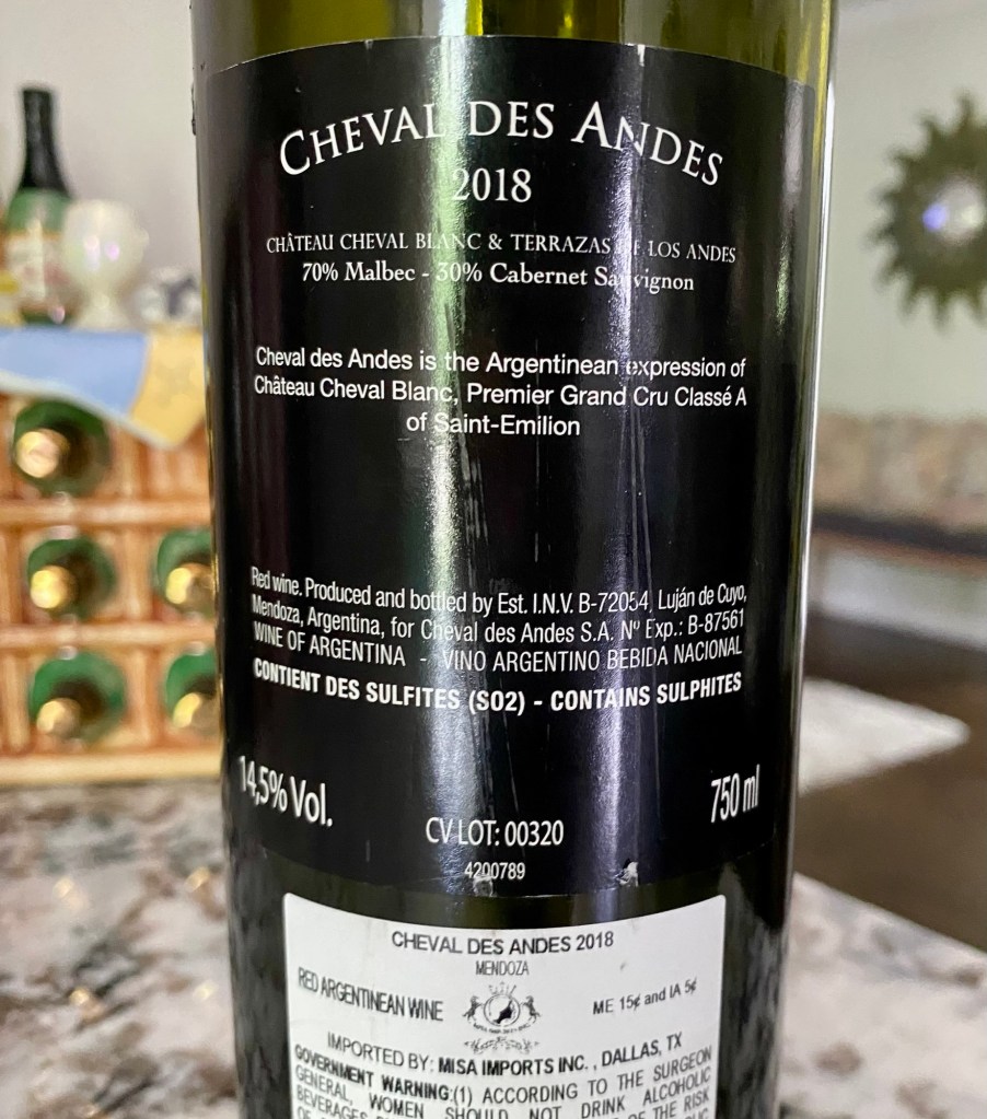 Cheval Des Andes|Cheval Blanc and Terrazas de los Andes|2018|14.5% ABV|$95