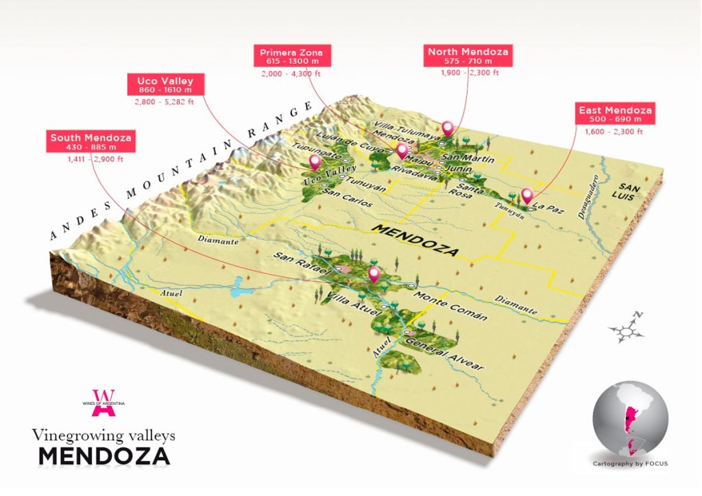 The Mendoza wine region is located within the Cuyo region of Argentina. Cuyo means desert and I have written about how shocked I was to learn that Mendoza is in fact an arid desert (read here). Very little rain falls on annual basis and the vast majority of water in the region comes from Andean snow melt.