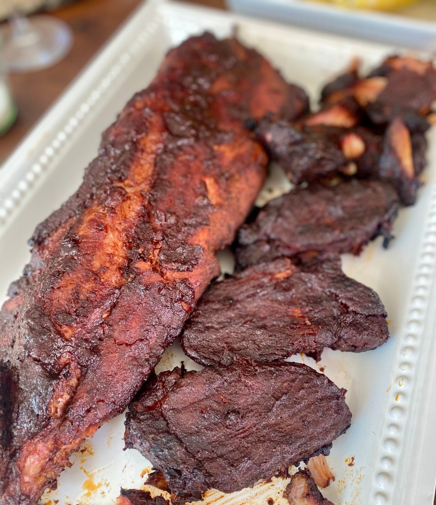 I noted aromas of fresh fruit, rose, a chalky minerality. All of this carried over to the palate and came across as an even higher acidity than I get from most rosés. The winemaker suggests pairing with all the things you would expect to eat during the Summer in the Hamptons: lobster, shrimp, soft cheeses. We decided to go in the complete opposite direction and pair with with smoked bbq baby back pork ribs and we absolutely loved it!